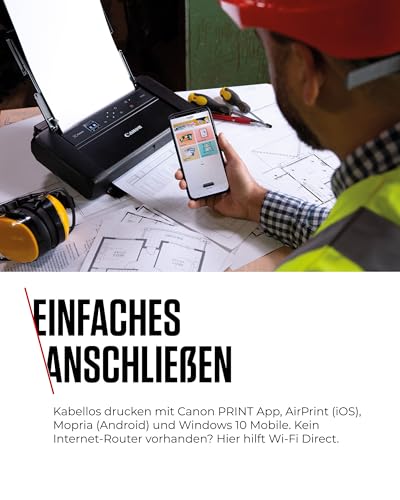 Canon PIXMA TR150 mobiler Drucker mit Akku (WLAN, Cloud, AirPrint, 4.800 DPI x 1.200 DPI, Highspeed USB Typ C, OLED-Display, Tintenstrahldrucker), schwarz