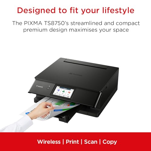 Canon PIXMA TS8750 Multifunktionsdrucker 3in1 (Tintenstrahl,Drucken, Kopieren, Scannen, A4, 10,8 cm Touch LCD, WLAN, Duplexdruck, 2 Papierzuführungen, 2 x 100 Blatt, 6 Separate Tinten) schwarz