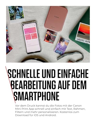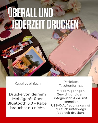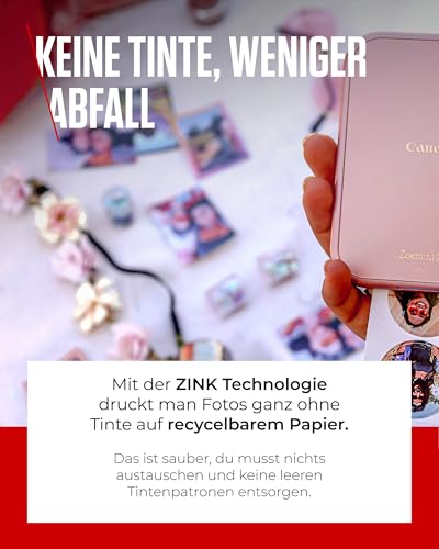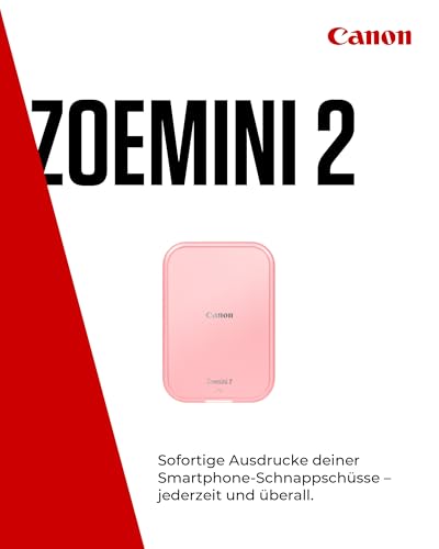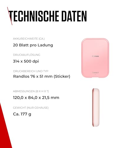 LIEFERUMFANG – 1x Canon Zoemini 2 Mobiler Drucker rosa, Kurzanleitung, USB Kabel USB-C auf USB-C , Sicherheitsinformationen, EWS Blatt Canon ZINK Fotopapier 3 Blatt , ZP-23 Papier 2 Blatt , Circle Sticker 1 Stückchen