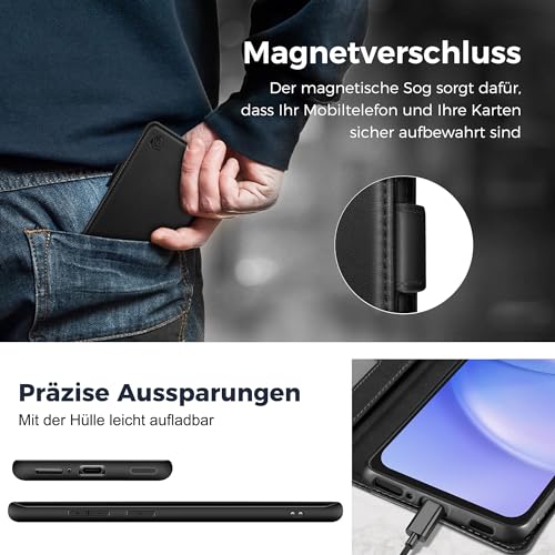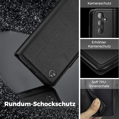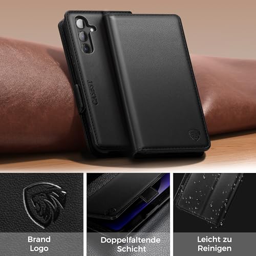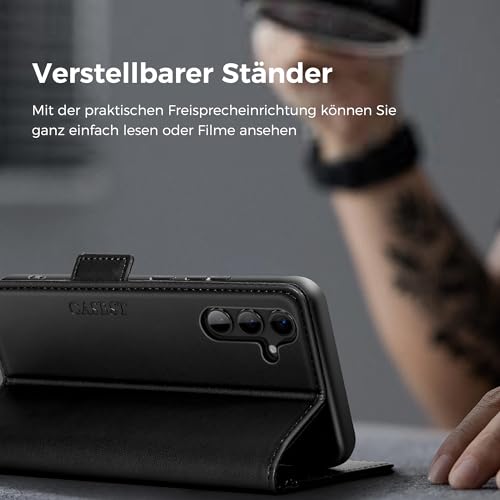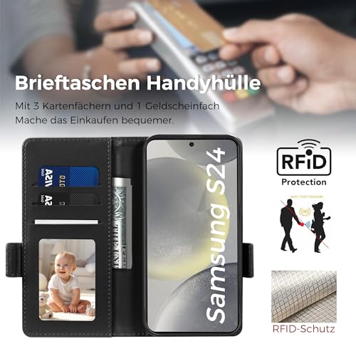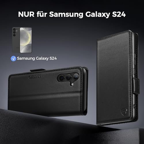 CASBST Handyhülle für Samsung Galaxy S24 Hülle, Premium Leder Schutzhülle Klappbar für Samsung S24, Flip Case mit Kartenfach Ständer Magnet Handytasche mit RFID Klapphülle für Galaxy S24 Schwarz