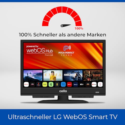 Cello C1624WS-12V 16″ Smart Camping Reise TV WEBOS by LG Full HD LED TV Triple Tuner DVB-T/T2-C-S/S2 HDMI USB Bluetooth 12V KFZ Car Adapter „Pitch Perfect Sound“ für EIN einzigartiges Klangerlebnis