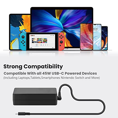 USB-C-Akkuladegerät mit 45 W, kompatibel mit HP Chromebook X360; HP Pavilion X2; Dell XPS 11 13; Acer Chromebook Spin; Acer Chromebook CB311; Mac Book Pro; Asus Chromebook; Huawei Matebook;