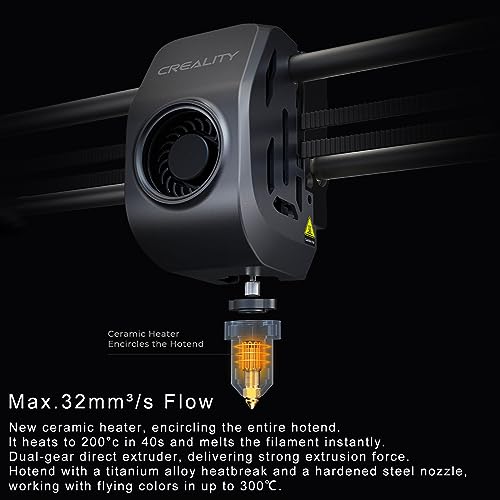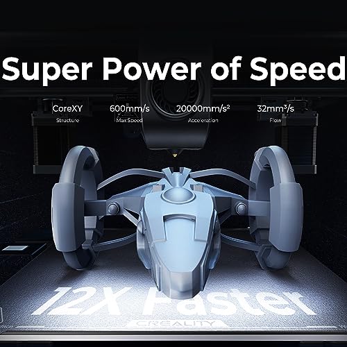 BEEINDRUCKENDE DRUCKGESCHWINDIGKEIT:von 600 mm/s:Durch die Kombination aus dem flexiblen Core-XY-System und einem leichten Druckkopf von demgegenüber 190 g erreicht der K1 Max in demgegenüber 0,03 Sekunden eine Geschwindigkeit von 600mm/s mit einer Beschleunigung von 20000 mm/s2.Das ist 12 Mal schneller als herkömmliche 3D-Drucker.Die Geschwindigkeit wird durch den leistungsstarken Dual-Core-CPU und den neuesten selbstentwickelten Slicer Creality Print ermöglicht.Es ist genauso effizient wie mehrere 3D Drucker.