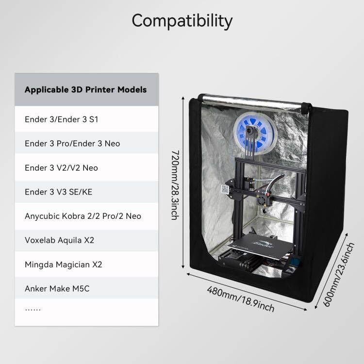 Creality Ender 3-Gehäuse,Ender 3 V2 Neo Schutzhülle 3D Drucker Compatible für Ender 3 V3 SE&KE,Ender 3 Neo,Ender 3 Pro,CP-01,Ender 3 S1/S1 Pro,SV06,Bambulab A1/A1 mini (AMS No Include)-48×60×72cm