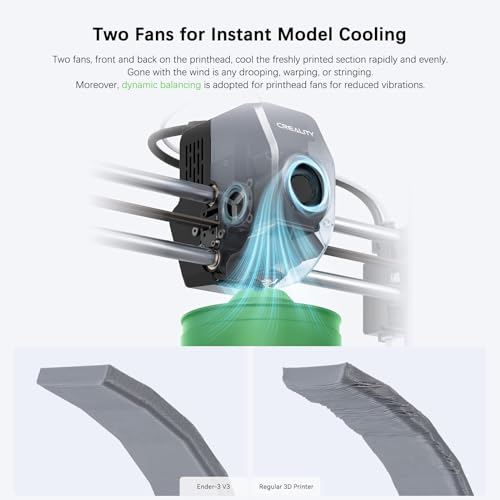 【Zwei leistungsstarke Lüfter für sofortige Abkühlung】Die Z-Achse verwendet Präzisions-Linearschienen und Zahnriemen. Keine Schichtverschiebungen mehr aufgrund verbogener oder falsch ausgerichteter Trapezgewindespindeln. Zwei Modellkühlventilatoren sind am Druckkopf vorne und hinten montiert. Ihr starker und gleichmäßiger Wind verstärkt die Abkühlung während des Druckens und verbessert somit die Druckqualität.