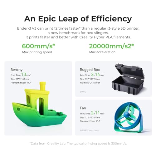 【CoreXZ für eine schnelle Druckgeschwindigkeit von 600 mm/s】Der Ender-3 V3 kann 12-mal schneller drucken als ein gewöhnlicher i3-Style 3D-Drucker, ein neuer Maßstab für Bett-Schleuderer. Das Bewegungssystem ist mit den X- und Z-Motoren, die am Boden befestigt sind, im Überfluss leichter und schneller. Die X- und Z-Achsen sind als eine Einheit unselbstständig, sodass zwei Hochdrehmomentmotoren gemeinsam für eine schnelle Reaktion arbeiten können.