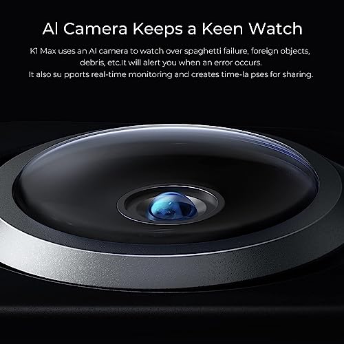 ✨ 【AI LIDAR & AI Kamera】 Der AI Lidar mit einer Auflösung von 1 μm scannt unabhängig die erste Schicht. Es pausiert den Druck und lässt Sie sofort wissen, ob etwas schief geht. Der K1 MAX verwendet eine KI Kamera, um Spaghetti Druckfehler, Fremdkörper, Schmutz usw. zu überwachen. Sie werden benachrichtigt, wenn ein Fehler auftritt. Es unterstützt auch Echtzeitüberwachung und erstellt Zeitrafferaufnahmen für das Teilen.