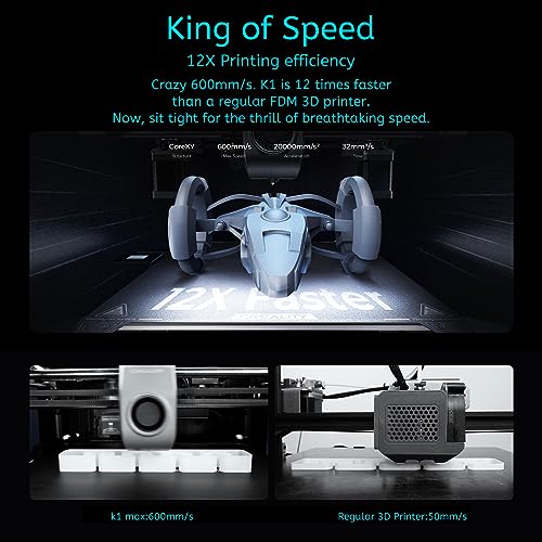 Der K1 Max 3D-Drucker ist ein wahres Geschwindigkeitswunder. Mit erstaunlichen 600 mm/s Druckgeschwindigkeit ist er 12-mal schneller als herkömmliche 3D-Drucker. Diese hohe Geschwindigkeit wird durch den leichten 190g Druckkopf und das flexible Core-XY-System ermöglicht. Dank des leistungsstarken Dual-Core-Prozessors und der brandneuen Creality Print Slicing-Software arbeitet der K1 Max so effizient wie mehrere 3D-Drucker zusammen.