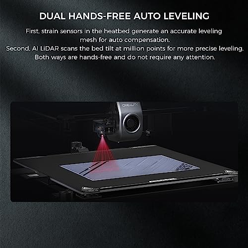 2. SMART AI LIDAR&KAMERA: Creality K1 max All-in-One-3D-Drucker ist mit einem fortschrittlichen SMART AI LIDAR und Kamerasystem ausgestattet. LiDAR scannt während des Druckens selbstständig die erste Schicht, unterbricht den Ablauf und benachrichtigt den Benutzer sofort, wenn Probleme auftreten. KI-Kamera überwacht potenzielle Probleme wie Spaghetti-Fehler, Fremdkörper und Ablagerungen und warnt bei Fehlern in Echtzeit. Drucker unterstützt die Echtzeitüberwachung und kann Zeitrafferaufnahmen zum Teilen erstellen. Die Dehnungssensoren befestigen zur präzisen Gleichmacherei bei, indem sie ein genaues Netz für die automatische Kompensation erzeugen und so eine optimale Druckqualität gewährleisten.