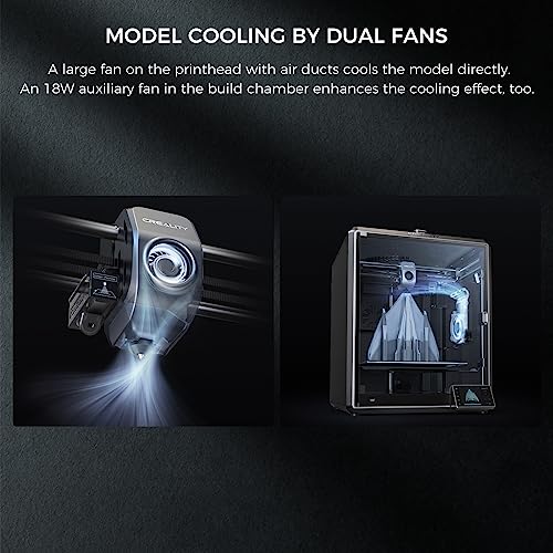 7. Abholen Sie sich umgehend ein cooles Modell: Die speziellen „Urus“ der Luftkanäle des Creality 3d K1 max 3D-Druckers kanalisieren den starken Wind, der von einem großen 5015-Lüfter erzeugt wird, um den frisch gedruckten Phase direkt zu kühlen. Das aufgetragene heiße Material härtet sofort aus und verbindet sich, wodurch ein Durchhängen oder Verziehen aufgrund von Überhitzung vermieden wird. Es gibt insgesamt bessere Überhänge, Brücken und mehr Details.
