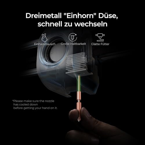 Verstopfungsfreier Extruder, schnell austauschbare Düse – Stabiles 3D-Drucker-Extrusionssystem für reibungsloseren Materialfluss und 1000 Stunden verstopfungsfreie Extrusion. Die Düse und die thermische Sperre in einer Einheit blockieren thermische Kriechvorgänge und gewährleisten einen einfachen Austausch.