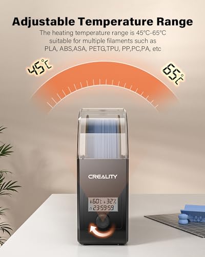 🎁Aufgerüstet 3D Filament trockner🎁 Echtzeit-Temperatur- und Feuchtigkeitsüberwachung sowie Anzeige der Trocknungszeit über einen Countdown-Timer ermöglichen es Ihnen, die Trocknungsbedingungen zu verfolgen. Der einstellbare Temperaturbereich von 45° – 65° und die Heizzeit von 0-24 Stunden können frei eingestellt werden, um die Filamente abstandslos zu frottieren.