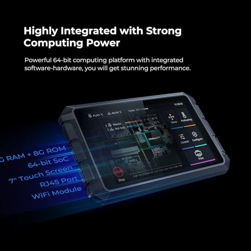 【Hochintegriert, starke Rechenleistung】 Unter dem großen 7-Zoll-Touchscreen läuft die Klipper-Firmware auf Hochtouren auf einer leistungsstarken 64-Bit-Rechnerplattform. Mit der Software-Hardware-Integration erhalten Sie eine beeindruckende Leistung, aber mit weniger Aufwand.