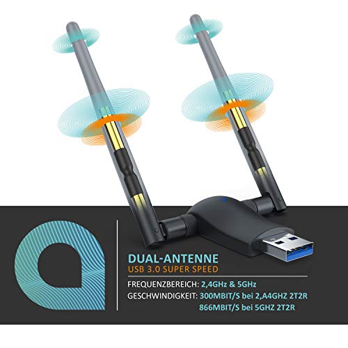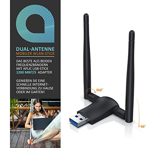 Der WLAN Stick unterstützt USB 3.0, um sich mit superschnellen 5 Gbps mit Ihrem PC zu verbinden. Mit 2 externen Dual-Band-Antennen bietet der Aplic-Stick stabile Verbindungen über große Distanzen.