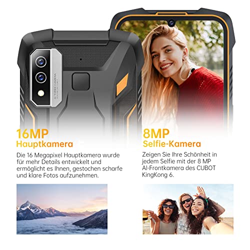 【6,08-ZOLL-HD + IP68-WASSERDICHTER UND STOSSDICHTER BILDSCHIRM】Das robuste CUBOT KING KONG 6 Outdoor Smartphone verfügt über ein 6,088 Aufwand HD+ Display Stoßdämpfungsleistung. bietet eine Abbau von 720 x 1560 Pixel und bietet klare Klarheit und lebendige Farben, Sie können das beste Gefühlsbewegung eines Vollbild-Smartphones bekommen.