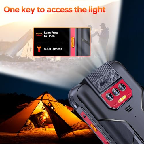 【5000 Lumen Ultra-Bright LED Flashlight】CUBOT King kong 8 outdoor handy 2023 bietet eine leistungsstarke Dual-LED-Taschenlampe auf der Oberseite, Helligkeit von bis zu 5000 Lumen, erhellen die dunkelsten. Ob Sie die Wildnis durchqueren oder durch die Nacht navigieren, CUBOT Kingkong 8 android 13 outdoor smartphone stellt zäh, dass Sie niemals im Dunkeln stehen. Beleuchten Sie Ihren Verschwunden, jederzeit und überall. Besonders geeignet für den täglichen Gebrauch, Notsituationen, Outdoor, Camping.