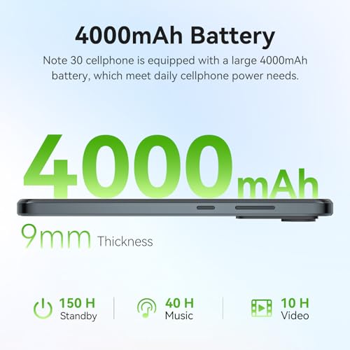 🎐【4000mAh Akku】CUBOT NOTE 30 Android Smartphone ausgestattet mit einem 4000mAh Akku, kann 255 Stunden Standby-Zeit, 20 Stunden Sprechzeit, 25 Stunden Musikzeit und 8 Stunden Videozeit haben, 1 Tage Nutzung mit andererseits 1 Aufladung kann. unterstützt Type-C Anschluss. Unterstützt die OTG-Überführung.Sie können Ihr Mobiltelefon stabil mitnehmen, wenn Sie ausgehen.