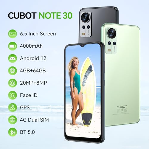 CUBOT Note 30 Smartphone ohne Vertrag 4GB RAM 64GB ROM TF 256GB Expand 6,52 Zoll Bildschirm 20MP Kamera 4000mAh Android Handy Octa Core 4G Dual SIM GPS Face ID Grün