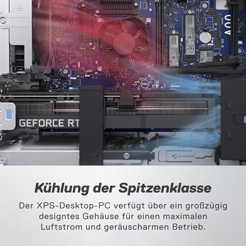 GROẞZÜGIGES DESIGN FÜR EINE EFFIZIENTE KÜHLUNG: Der XPS-Desktop-PC verfügt über ein weitherzig designtes Gehäuse statt dessen einen maximalen Luftstrom und geräuscharmen Betrieb. Kühle Luft bewegt sich schnell und leise durch das geräumige Tower-Gehäuse.