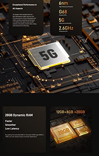 ★【6nm MediaTek Dimensity 1080, der leistungsstärkste Chip in dem robusten Handy aller Zeiten】Das Doogee V Max, ausgestattet mit ARM Mali-G68 Grafik-Engine und ARM Cortex-A78 Achtkern-CPU von bis zu 2,6GHz, bietet außergewöhnliche Leistung für alle Aspekte wie rasche Bildschirm- und APP-Reaktion, flottes Gaming, flüssige Videotelefonie und ruckfreies Live-Streaming.