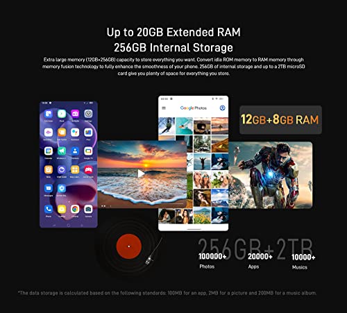 ★【Bis zu 20GB erweiterter RAM, 256GB interner Speicher】Alleinig große Speicherkapazität (12+8GB Erweiterter RAM, 256GB ROM), um alles zu ablegen, was Sie wollen. Wandeln Sie ungenutzten ROM-Speicher in RAM-Speicher um durch Speicherfusionstechnologie, um die Leistungsfähigkeit Ihres Handys vollständig zu modifizieren. Der 256GB interner Speicher und eine microSD-Karte von bis zu 2TB sorgen für reichlich Platz für alles, was Sie ablegen.