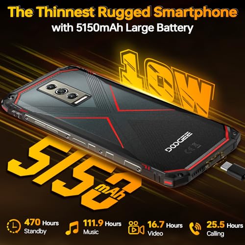 【5150mAh+OTG+10.7mm Ultra-ausgemergelt】Unter der Unterstützung des selbst entwickelten ultra-dünnen Architektur Systems und der TDDI Technologie ist das DOOGEE Blade10 Pro outdoor smartphone mit seinem 10.7mm ultra-dünnen Gehäuse das dünnste robuste Telefon auf dem Absatzgebiet und verfügt über einen leistungsstarken 5150mAh Akku. Es kann als mobile Stromquelle dienen, um andere Geräte im Notfall über OTG aufzuladen. Erleben Sie die perfekte Mischung aus ultradünner Eleganz und lang anhaltender Ausdauer.