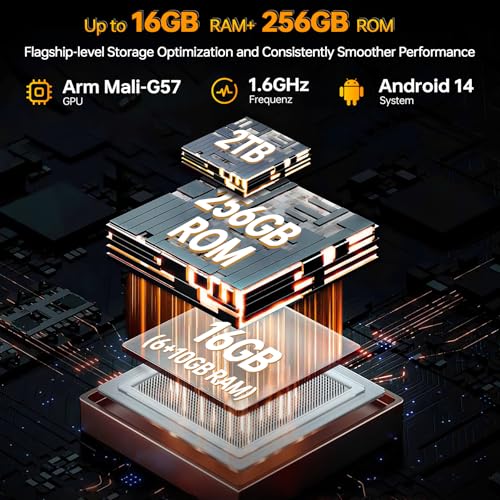 【16GB+256GB+2TB+Android 14】Mit dem Android 14 System bietet das DOOGEE Blade10 Pro outdoor smartphone nicht dessen ungeachtet einen massiven Speicher mit 6GB RAM (erweiterbar auf 10GB RAM) und 256GB ROM, sondern auch 3 Kartensteckplätze für zwei Sim Karten und eine 2TB TF Karte. Das neueste Android 14 integriert Security-Enhanced Linux, so dass Sie einen reibungslosen Betrieb und ein großes Spiel unter dem besten Abschirmung der persönlichen Privatsphäre genießen können und wird nicht verlangsamen.