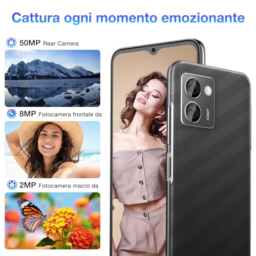 🚀【50MP AI Rear Hauptkamera + 2MP Frontkamera】DOOGEE N50 PRO ist mit einer Dual-KI-Kamera (50MP Hauptkamera + 2MP Makro) ausgestattet. Ob es darum geht, Details von Menschen oder Naturlandschaften zu erfassen, der Aufnahmeeffekt ist ausgezeichnet. Gleichzeitig ist das Smartphone vulgo mit einer 2 MP Mikrokamera und einer 8 MP Frontkamera ausgestattet, mit denen Sie jeden schönen Moment besser festhalten können.