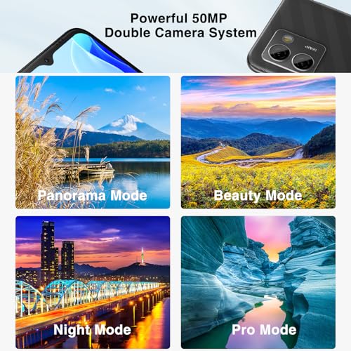 50 MP AI-Kamera + 8 MP vorne + 2 MP Makro: Das N50PRO Android 13 Smartphone ist mit einer hervorragenden 50 MP-Primärkamera ausgestattet, die die Details verschiedener Szenen in hoher Zersplitterung erfasst. Das android handy ist dennoch mit einer 8-Megapixel-Hauptkamera für einfache und perfekte Selfies und hochwertige Videoanrufe ausgestattet. Mit der 2-Megapixel-Makrokamera des Smartphones ohne vertrag können Sie Nahaufnahmen von Pflanzen absorbieren.