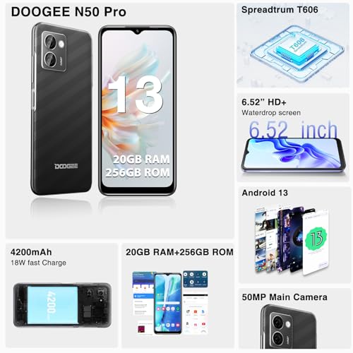 ![DOOGEE N50 Pro Smartphone Ohne Vertrag [2024], 20GB+ 256GB (1TB TF), Android 13 Smartphone, 6.52" HD+ Handy Ohne Vertrag, Octa-Core, 50MP+8MP, 4200mAh Akku, 4G Dual SIM/Face ID/Fingerabdruck/OTG/GPS](https://c.media-amazon.com/images/I/41xcHL6p6HL.jpg)