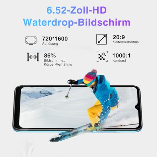 DOOGEE N50S Handy ohne vertrag, 9GB+128GB/TF 1TB Smartphone, 6.52″ HD+ Display Handy, Android 13, Octa Core Prozessor, 20MP+8MP Kamera,Dual SIM 4G Handys, 4200mAh, Gesichtserkennung,GPS, OTG, Blau