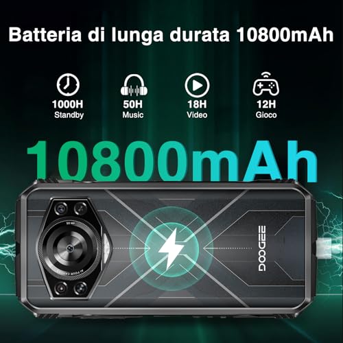 【10800mAh Akku】Das robuste Smartphone mit einem großen 10800mAh Akku kann Ihre unterschiedlichen Bedürfnisse den ganzen Tag lang zu Ende führen. Unterstützt 18 W Typ-C Schnellladung. Nach vollständiger Aufladung können Sie es 3-5 Tage lang verwenden. Darüber hinaus verfügt das DOOGEE S-Cyber-Telefon über die OTG-Aufnahme, die andere elektronische Geräte im Notfall mit Strom liefern kann, was es zu einem wertvollen und zuverlässigen Gerät für Camping und Wandern macht.