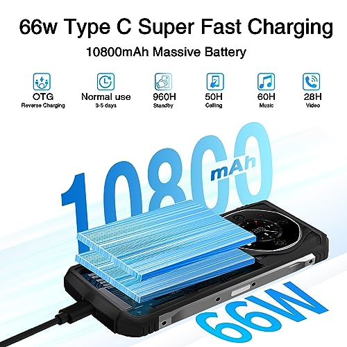 10800mAh Akku & 66W Schnellladung: Das S110 outdoor smartphone ist mit einem 10800mAh Akku ausgestattet (entspricht dem Dreifachen anderer Handy akkus). Einstellung mit häufigem Aufladen, genießen Sie bis zu 720 Stunden Standby-Zeit und stellen Sie abgehärtet, dass Ihr Gerät jederzeit einsatzbereit ist. Die 66W Schnellladung und die umgekehrte OTG-Ladefunktion bringen Ihr handy-outdoor in einem Augenblick erneut auf volle Ladung.