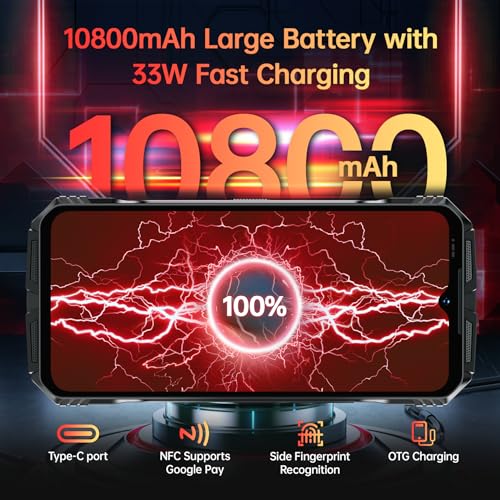 【10800mAh Großer Akku & 33W】Das robuste Smartphone mit einem großen 10800mAh Akku kann Ihre verschiedenen Bedürfnisse den ganzen Tag lang erfüllen. Es unterstützt 33W Typ-C. Nach vollständiger Aufladung können Sie es in der Regel für 3-5 Tage verwenden und die Standby Zeit kann 40 Tage erreichen. Darüber hinaus hat DOOGEE S118 OTG Überführung, die andere elektronische Geräte im Notfall mit Strom abliefern kann, so dass es ein gutes und vertrauenswürdiges Gerät für Camping und Wandern
