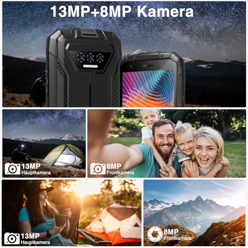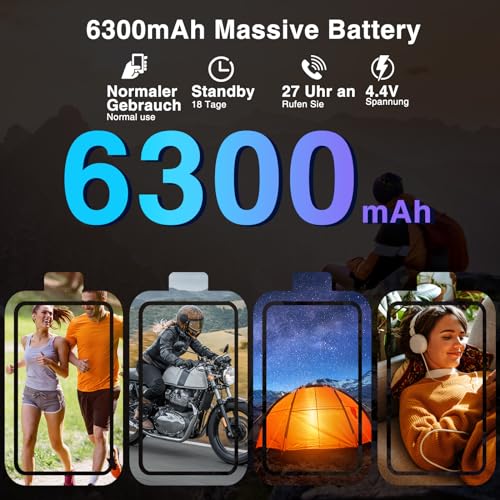 【6300-mAh-Superakku & 13-MP-AI-Hauptkamera】DOOGEE S41 MAX Outdoor-Smartphone ist mit einem großen 6300-mAh-Akku ausgestattet. Sie können eine Standby-Zeit von 72 Stunden genießen. Das Outdoor-Smartphone von DOOGEE ist mit einer hochauflösenden 13 MP AI-Hauptkamera ausgestattet, die nicht durch Stürze, Stöße oder Flecken beeinträchtigt wird. Es kann alles klar erfassen. Mit der OTG-Tabelle können Outdoor-Telefone im Notfall als Powerbank für andere Geräte genutzt werden.