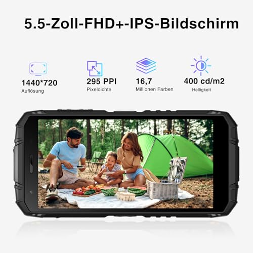 【5.5-Aufwand-IPS-HD+-Display und Android 13】DOOGEE S41 MAX Outdoor Handy Ohne Kontrakt erreicht mit dem neuesten Android 13-System ein neues Stufung an Individualisierung, Privatsphäre und Effizienz. Das Outdoor-Smartphone verfügt über ein 5,5-Aufwand-FHD+-Display mit einer Zerlegung von 1440*720, einer Pixeldichte von 295 PPI und einem Farbraum von 16,7 Millionen, das auch bei hellem Sonnenlicht gut lesbar ist und lebendige Farben anzeigt. Genießen Sie ein äußerst komfortables Surf- und Spielerlebnis.