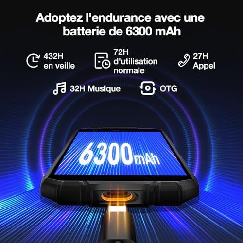 【6300 mAh Akkuleistung + umgekehrte Ladung】Das unzerbrechliche Telefon DOOGEE S41PLUS wird mit einem großen 6300-mAh-Akkumulator geliefert, der den ganzen Tag Strom liefert, perfekt für Outdoor-Ereignis oder lange Reisen. Der langlebige, wasserdichte und stoßfeste Akkumulator des Telefons hält bis zu 15 Tage Standby-Zeit, 2 bis 3 Tage bei normalem Gebrauch und bis zu 32 Stunden Gesprächszeit. Perfekt für Arbeiter im Freien und längere Aktivitäten