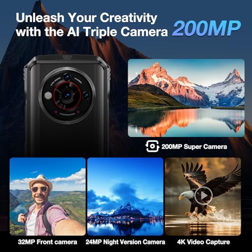 【200MP Ultra Clear Hauptkamera, 4K-Videoaufnahme】 Entdecken Sie die fotografische Revolution mit der 200 MP Hauptkamera des unzerbrechlichen 5G Outdoor smartphone DOOGEE V30 Pro: ein Fenster in eine Welt ultrascharfer Details. Mit der EIS-Anti-Shake-Unterstützung sorgt es für stabile und flüssige Aufnahmen, egal ob Sie gehen oder sich bewegen. Dank der 4-fach-Zoom-Technologie können Sie scharfe Details aus der Nähe oder aus der Ferne erfassen. Darüber hinaus verfügt es über eine 32MP Frontkamera und eine 24-MP-Nachtsichtkamera.