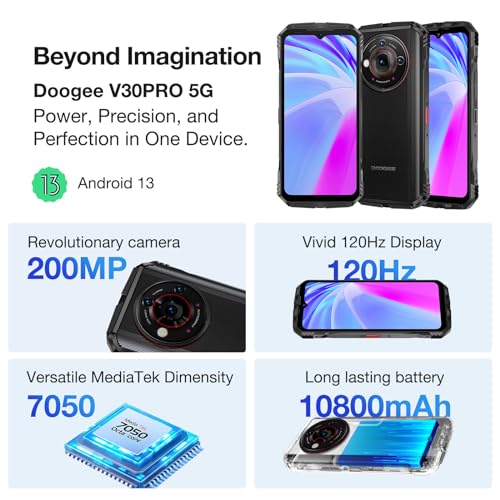 ![DOOGEE V30PRO [2024] 5G Outdoor Handy 32GB + 512GB, 200MP Kamera + Nachtsicht, 6.58 Zoll FHD + 120 Hz, 10800 mAh Akku Octa Core Android 13 Outdoor Smartphone Ohne Vertrag IP68/ OTG/NFC/WiFi 6 – Bild 5](https://c.media-amazon.com/images/I/51zY3It9RJL.jpg)