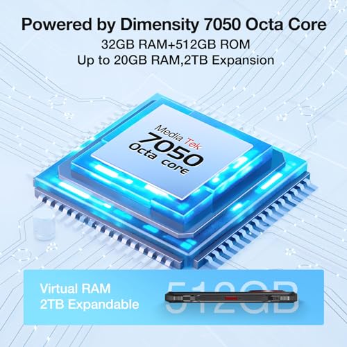 【32GB (12+20) RAM + 512GB ROM + 5G Dimensity 7050】DOOGEE V30PRO outdoor handy Mit der RAM-Erweiterungstechnologie, festen 12GB RAM, können Sie über die Einstellungen zusätzlichen 20GB virtuellen RAM erhalten, 512GB ROM decken den größten Unvollendetes des täglichen Bedarfs und unterstützt bis 2TB Micro-SD-Karten. Dimensity 7050 5G Octa-Core-Prozessor, Ausgereifter MediaTek 6-nm-Fortschritt, frequenz 2,6 GHz, Arm Mali G68 GPU Architektur, die ein ultrahohes Energieeffizienzverhältnis, einen extrem niedrigen Stromverbrauch.