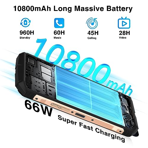 【10080 mAh + 66W Schnellladung + OTG-Rückwärtsladung】outdoor handy 2024 DOOGEE V31GT 10800 mAh Hochleistungsakku, bis zu 960 Stunden Standby-Zeit, 47 Stunden Musikzeit, 60 Stunden Sprechzeit, 28 Stunden Videozeit und kann innerhalb von 30 Stunden aufgeladen werden Minuten Auf 50 % aufladen bei 66 W. Das outdoor smartphone ohne vertrag DOOGEE V31GT fungiert über das OTG-Kabel als mobile Stromversorgung, zum Aufladen anderer Mobiltelefone, Uhren und Kopfhörer verwendet werden kann.