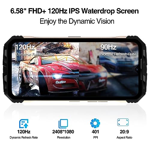 【120Hz-Bildwiederholfrequenz/6,58 Steuer-Immersives Audiovisuelles Erlebnis】DOOGEE V31GT outdoor handy 2024 verfügt über einen 6,58Zoll-Full-HD+120Hz-Wassertropfenbildschirm, eine Zerfall von 1080 x 2408, 401 PPI, 16,7 Millionen Farben und einen IPS-Bildschirm, Bildwiederholfrequenz von 120 Hz. High-Distinktion-Display und Dual Hi-Res können ein realistischeres audiovisuelles Erlebnis ergänzen und die Handberührung beim Spielen, Beachtung von Videos, Scrollen von Inhalten usw. flüssiger machen.