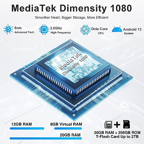【Dimensity 1080 & 20 GB + 256 GB großer Speicher + 2 TB Erweiterbar】DOOGEE V31GT 5G outdoor smartphone 2024 ist mit dem fortschrittlichen Dimensity 1080 Octa Core 2.6GHz 6nm, ausgestattet, der eine hohe Leistung und ein reibungsloses Betriebserlebnis bietet und Verzögerungen, Abstürze oder heiße Hände vermeidet. Outdoor handy 2024 Ausgestattet mit 20 GB RAM (12 GB + 8 GB virtueller RAM) + 256 GB ROM unterstützt es flüssigeres Multitasking und leistungsfähigeren Speicherplatz.