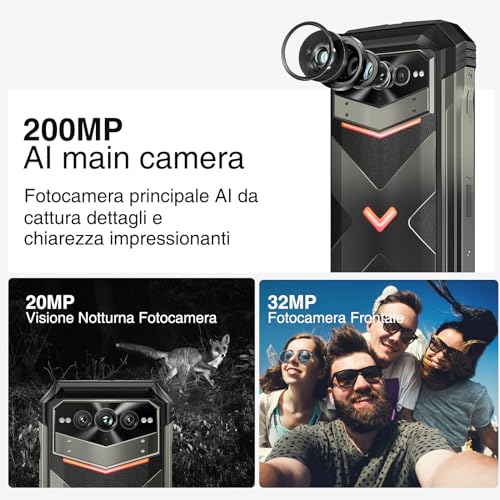 【200 MP + 32 MP + 20 MP + 8 MP Kameras】 5G DOOGEE VMAX PLUS Rugged Smartphone hat eine Kameraauflösung von bis zu 200 MP, was fast 2 mal im Vergleich zu der unzerstörbaren Telefonkamera VMAX 108 MP ist. Dieses robuste Smartphone ist mit der innovativsten AI-Kamera-Funktion ausgestattet, das unzerstörbare Telefon mit 32 MP Pixel Frontkamera, um Ihnen zu helfen, jede Schönheit von Selfies einzufangen. Die 20 MP Nachtsicht des 5G unzerstörbaren Telefons erleichtert die Aufnahme von Szenen im Dunkeln, während der Weitwinkel und das 8MP Makro des Rugged Smartphones es Ihnen ermöglichen, grandiose Panoramen zu erfassen, ohne die mikroskopische Welt aus den Augen zu verlieren