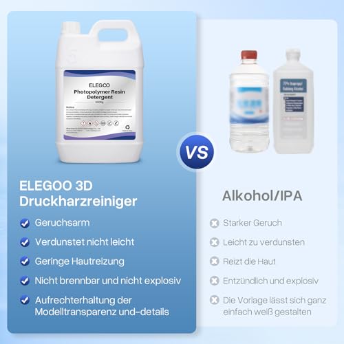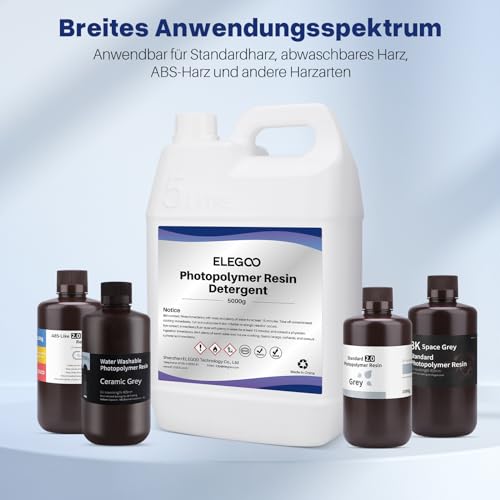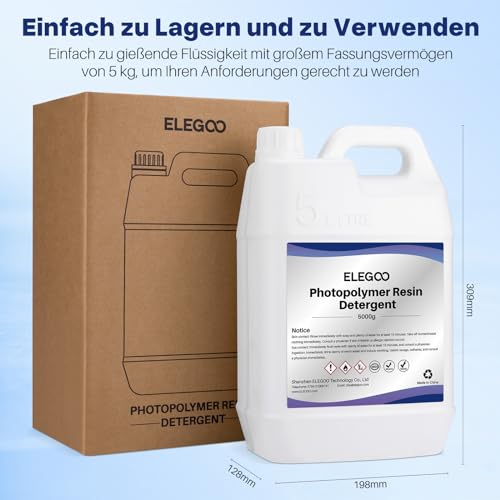 ELEGOO 3D Drucker Harz Reiniger 5KG, Photopolymer harz Reinigungsmittel, Geruchsarm und Ungiftig, Nicht Brennbar und Nicht Korrosiv, Kompatibel mit den Meisten 3D-Druckharzen und 405 nm UV Resins