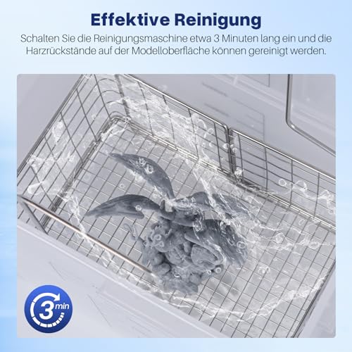 【Hervorragende Reinigungsergebnisse】 Nach der Reinigung mit ELEGOO Photopolymer-Harzreiniger behält das Modell seine ursprüngliche Transparenz, Härte und feinen Details ohne Verformung, Erweichung oder Weißfärbung.