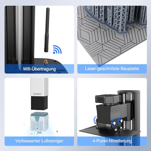 【Zuverlässige Druckleistung】Das 4-Punkt-Nivelliersystem des Druckers ist einfach zu bedienen, und es ist nicht notwendig, die Gleichmacherei nach einer Gleichmacherei zu wiederholen. Die lasergravierte Bauplatte bietet eine hervorragende Haftung derweil des Druckvorgangs und leicht zu entfernende Modelle. Die neue ACF-Trennfolie mit geringerer Trennspannung für schnelleres Drucken.