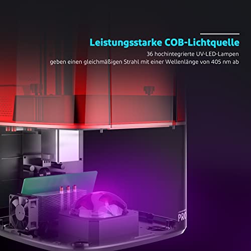 【Leistungsstarke COB-Lichtquelle】Die verbesserte COB-Linse mit unregelmäßige Oberfläche besteht ganz 36 hochintegrierten UV-LED-Leuchten, abhängig mit einer Fresnel-Linse, um einen gleichmäßigen Licht-Strahl mit einer Wellenlänge von 405 nm für eine glattere Oberfläche und eine unglaubliche Druckqualität zu abliefern.