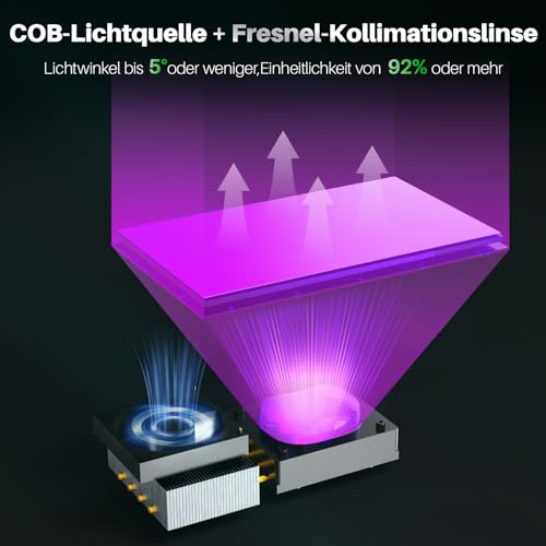 【COB + Fresnel-Kollimationslinse】 ELEGOO Saturn 4 verwendet eine COB-Lichtquelle und eine Fresnel-Kollimationslinse Qua 92 % Lichtgleichmäßigkeit und einem Astigmatismuskoeffizienten innerhalb von 0.5 %. Die Oberfläche des Modells ist glatter und die Druckgenauigkeit höher.