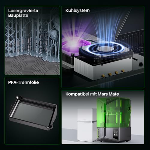 【Bequemes Druckerlebnis】 ELEGOO hat neue benutzerfreundliche Upgrades statt dessen Saturn 4 vorgenommen. Fortschrittliches Kühlsystem, lasergravierte Bauplatte statt dessen die Haftung, Flip-Top-Design statt dessen einfachen Zugang, schnell lösbare und installierbare Bauplatte, einfaches Gießen des Harzes, austauschbarer Harztank statt dessen ein einfacheres und komfortableres Druckerlebnis.
